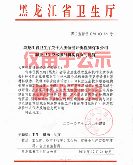 職業(yè)衛(wèi)生資質(zhì)批復